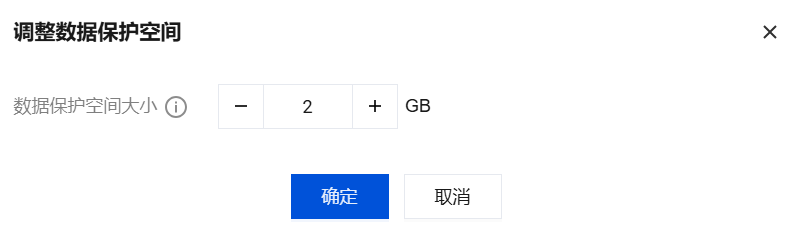 3. 在弹窗下,设置需要的数据保护空间大小,可选择范围为1GB - 10GB,单击确定。