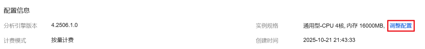 2. 在实例规格后单击调整配置。