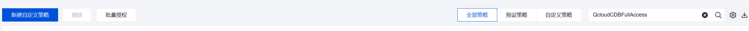 如果您想要让用户只拥有非资源级的 API 接口的操作权限,您可以对该用户使用名称为:QcloudCDBProjectToUser 的策略。