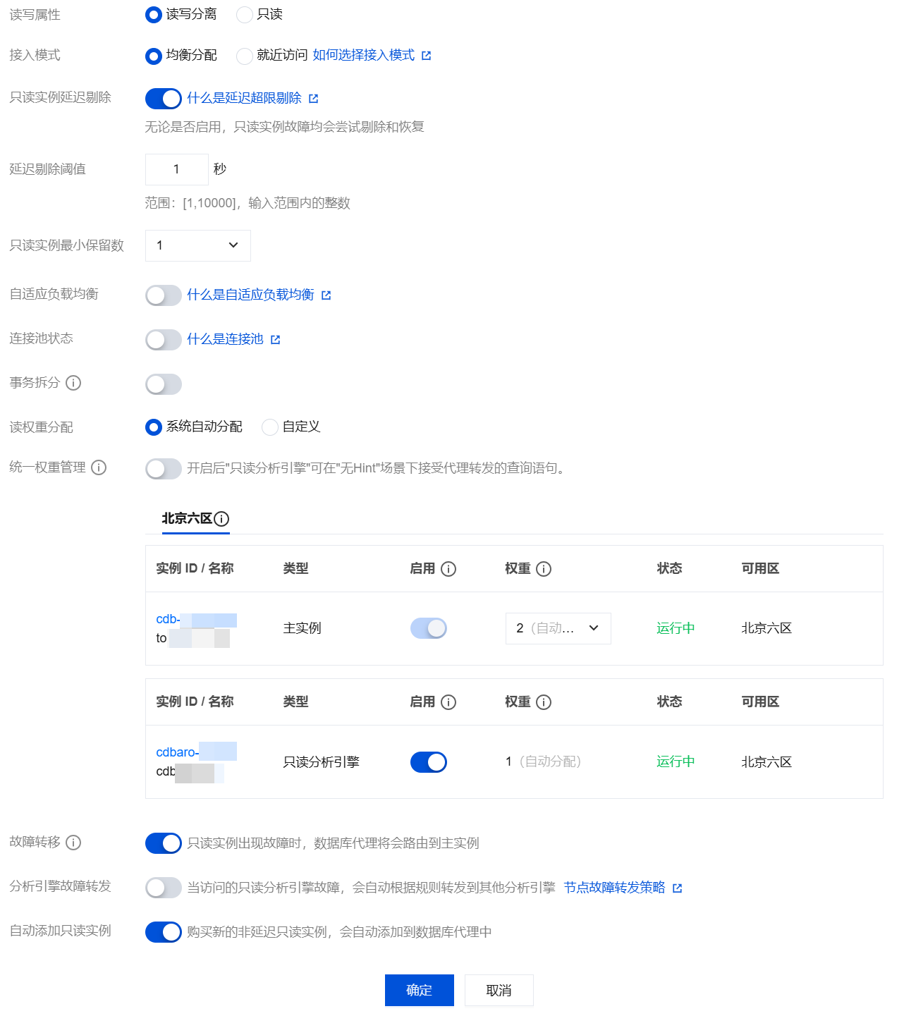 在调整配置页面,选择对此访问连接的读写属性,完成读权重分配,单击