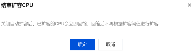 3. 在结束扩容 CPU 的弹窗中单击确定。