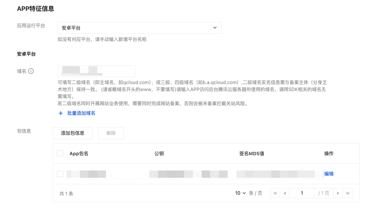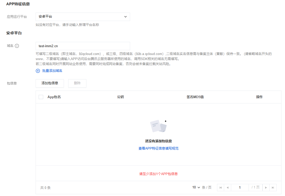 4. 在包信息模块,单击新增包信息,在弹出的窗口中,按需填写相关的信息,详情请参见 APP 特征信息填写参考规范。