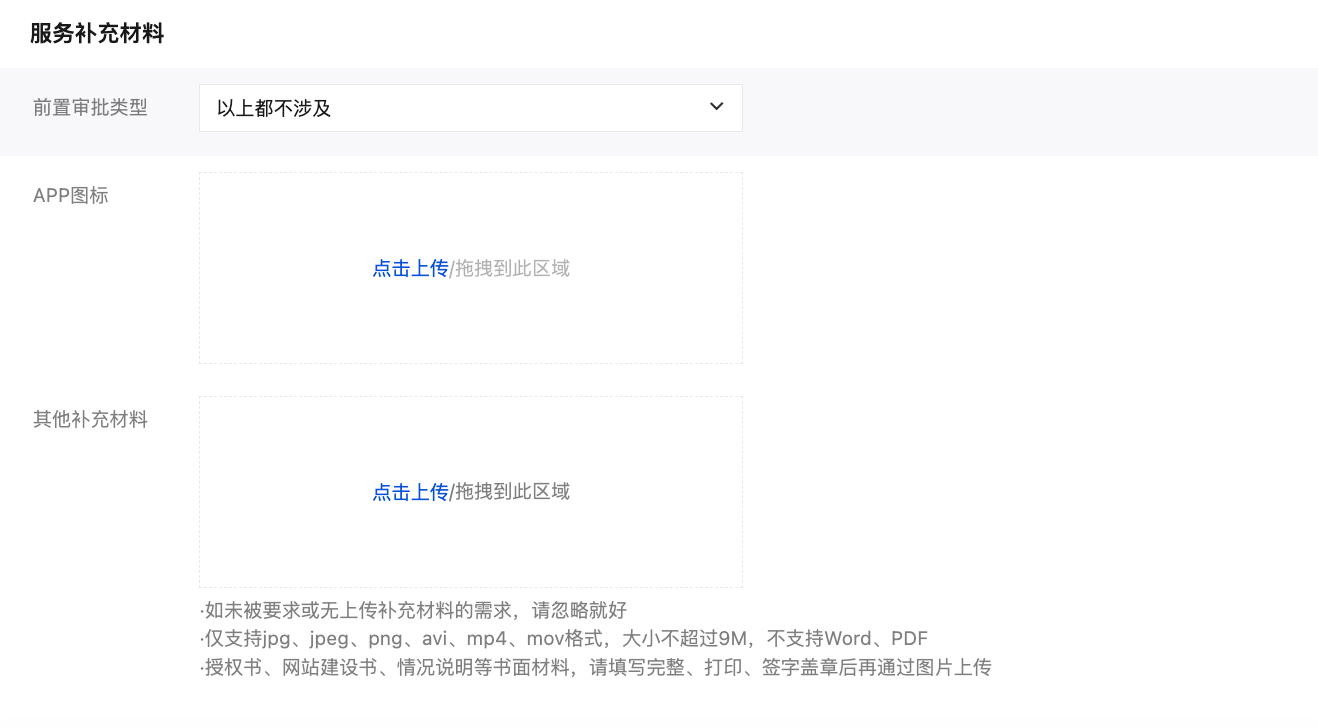 其他补充材料 | 如有 APP 其他补充材料可点击上传,没有则不需要上传。 |