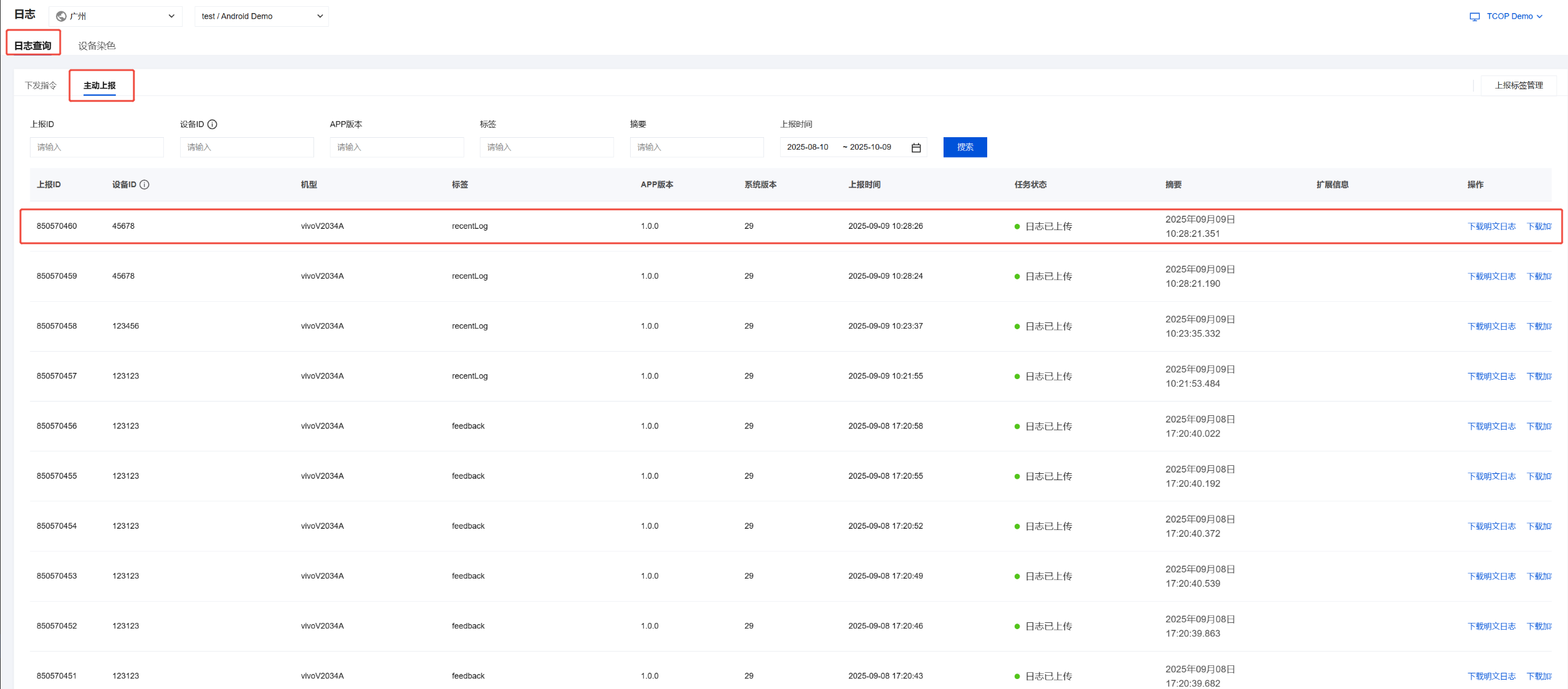 SDK 支持业务主动调用上报接口,上传自定义日志、文件等信息。该功能可用于用户反馈、异常发生等场景及时上报本地日志信息,帮助保留问题现场。