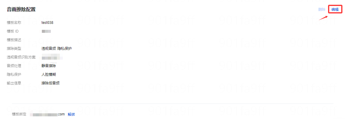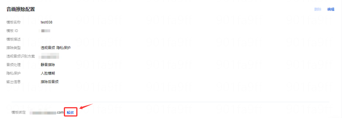 2. 选择已关联域名的音画擦除模板,单击解绑。