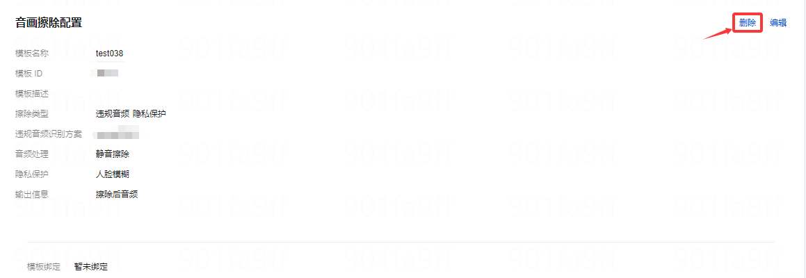 2. 选择您已创建成功的音画擦除模板,单击上方的删除。