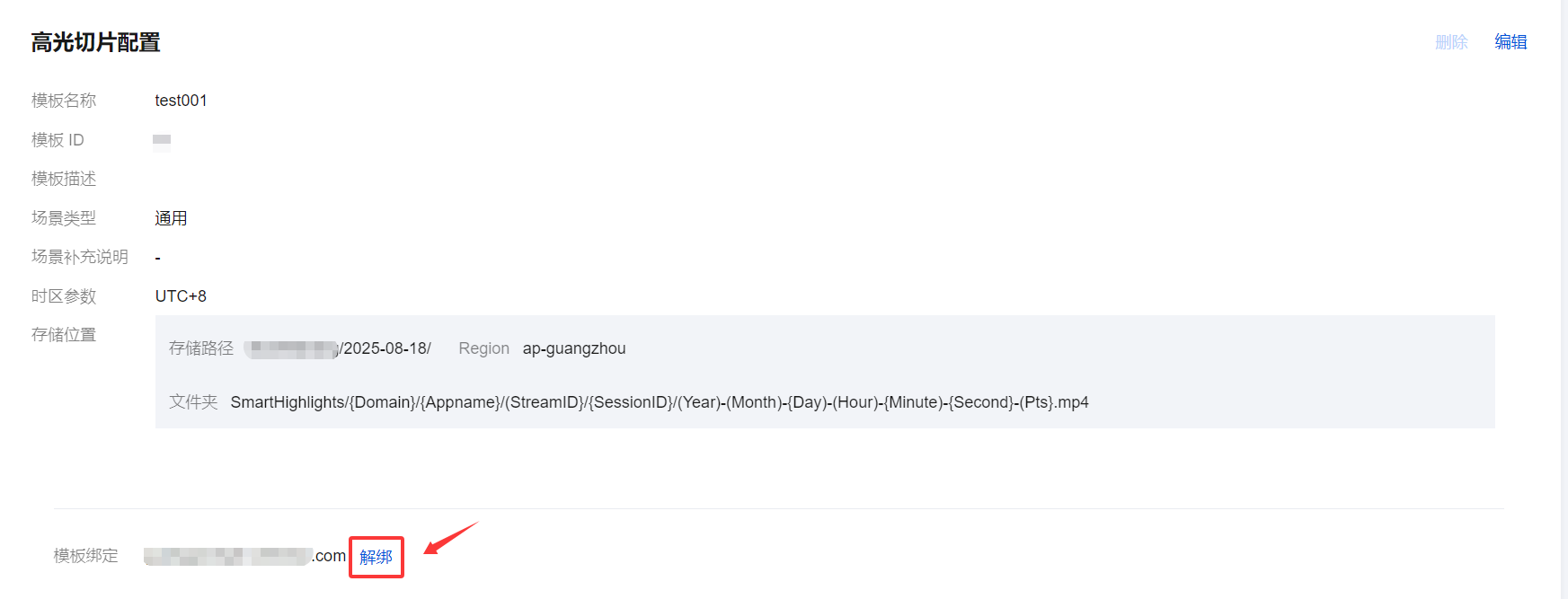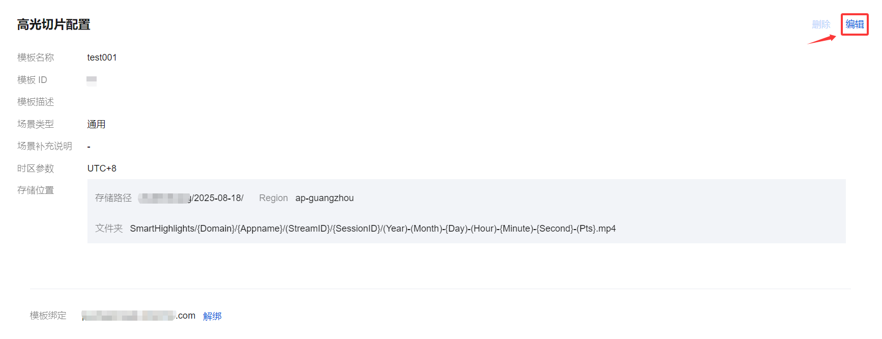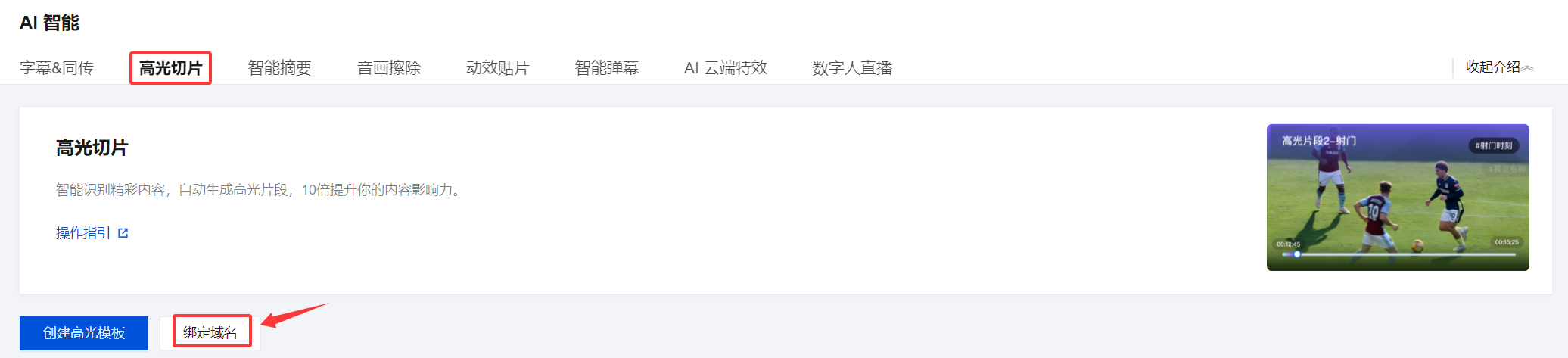 模板创建成功后,可与推流域名进行关联。关联成功后5分钟-10分钟生效,关联的域名推流成功即会触发高光切片。