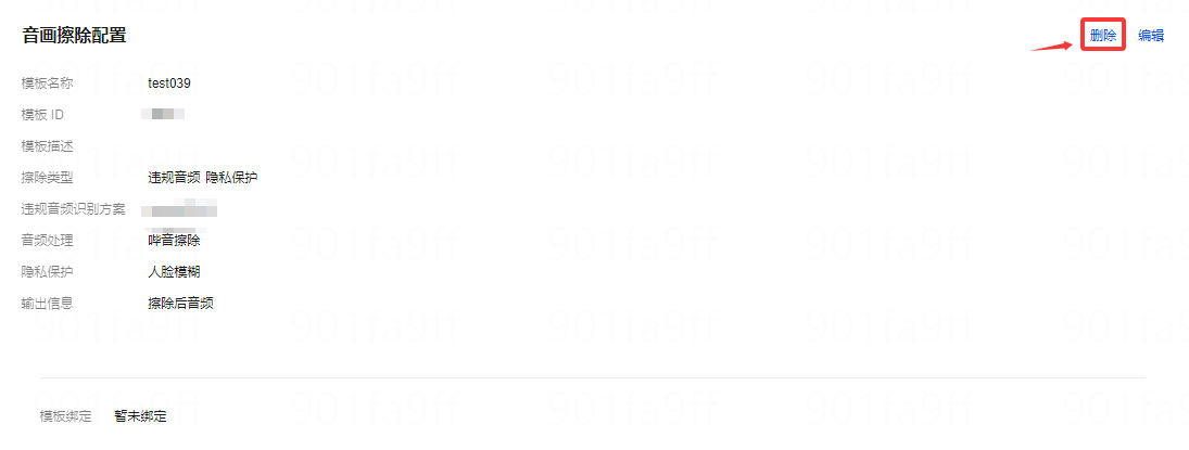 2. 选择您已创建成功的音画擦除模板,单击上方的删除。