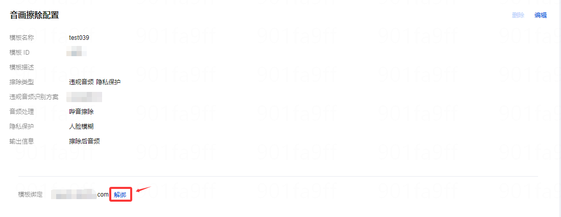 2. 选择已关联域名的音画擦除模板,单击解绑。