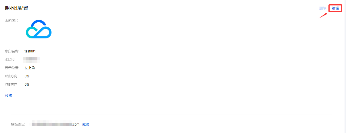 2. 选择您已创建成功的明水印模板,并单击右侧的编辑,即可进入修改模板信息。