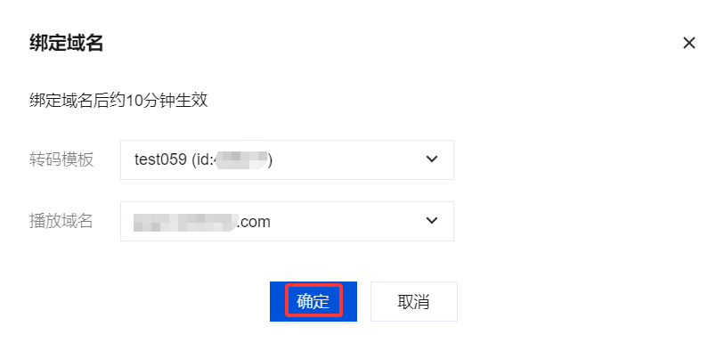 2. 选择您需绑定的转码模板及播放域名(可同时绑定多个播放域名),单击确定即可绑定成功。