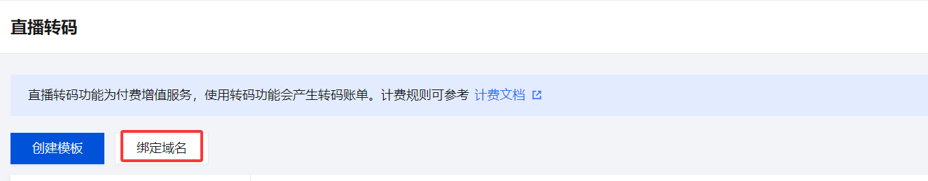1. 选择转码模板,单击绑定域名。