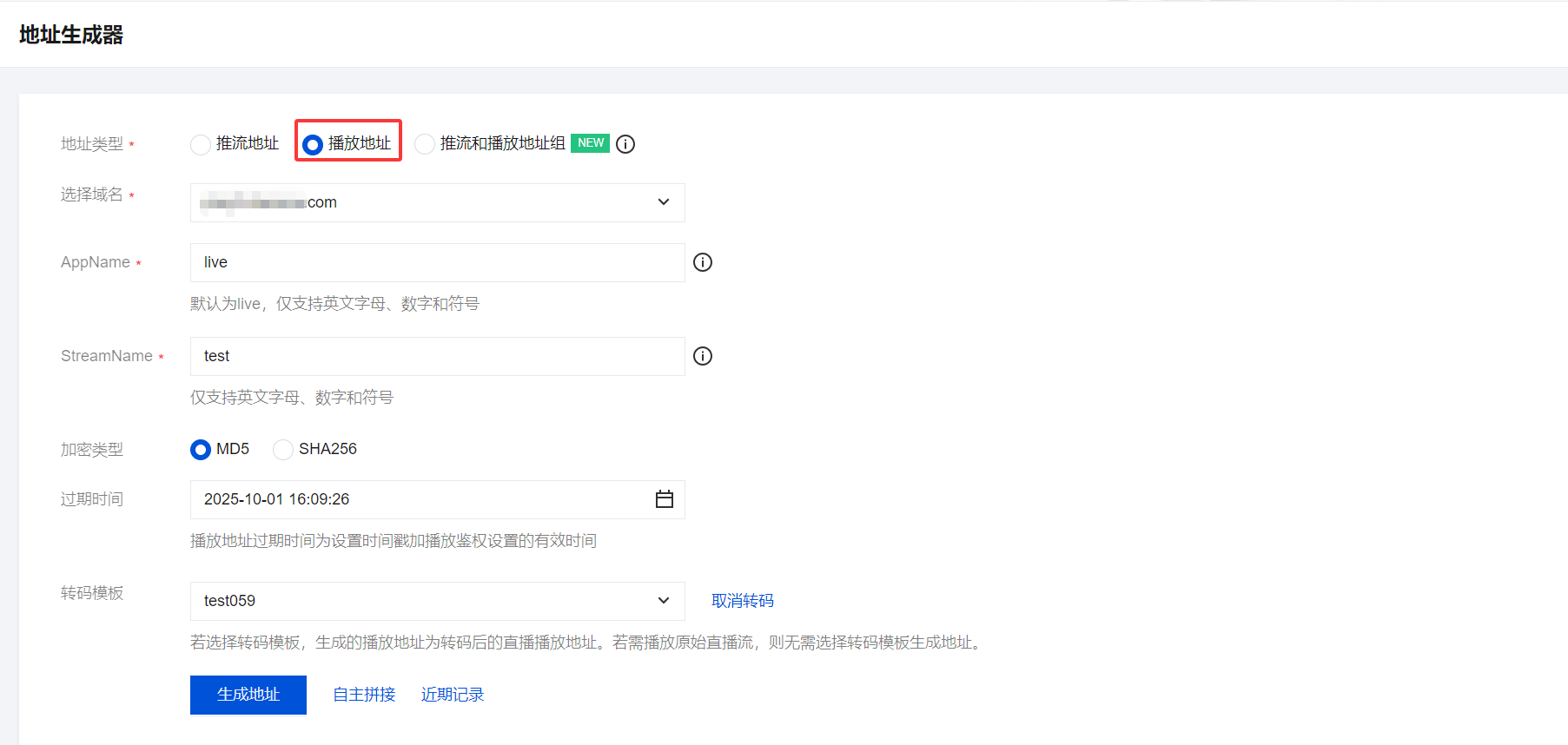 步骤3:生成播放地址