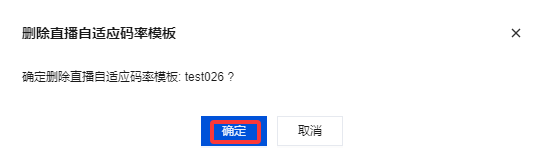 3. 确认是否删除当前直播自适应码率模板,单击确定即可成功删除。