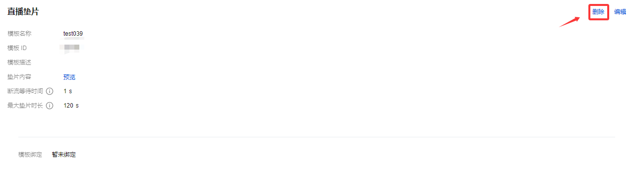 2. 选择您已创建成功的垫片模板,单击右上方的删除。