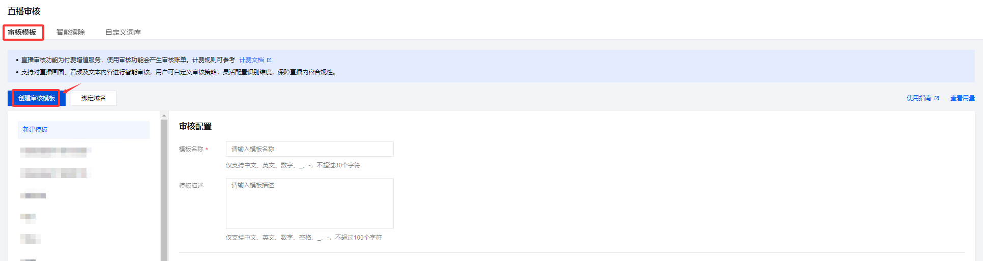 创建直播审核模板