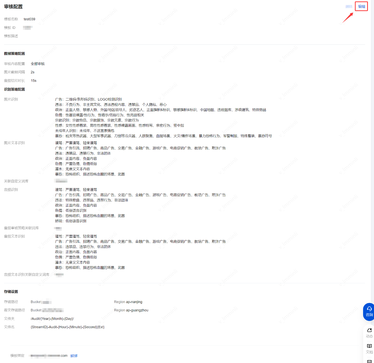 1. 在识别策略配置页面,可根据您的不同业务场景需求,进行图片识别、音频识别和音频文本识别的策略配置。