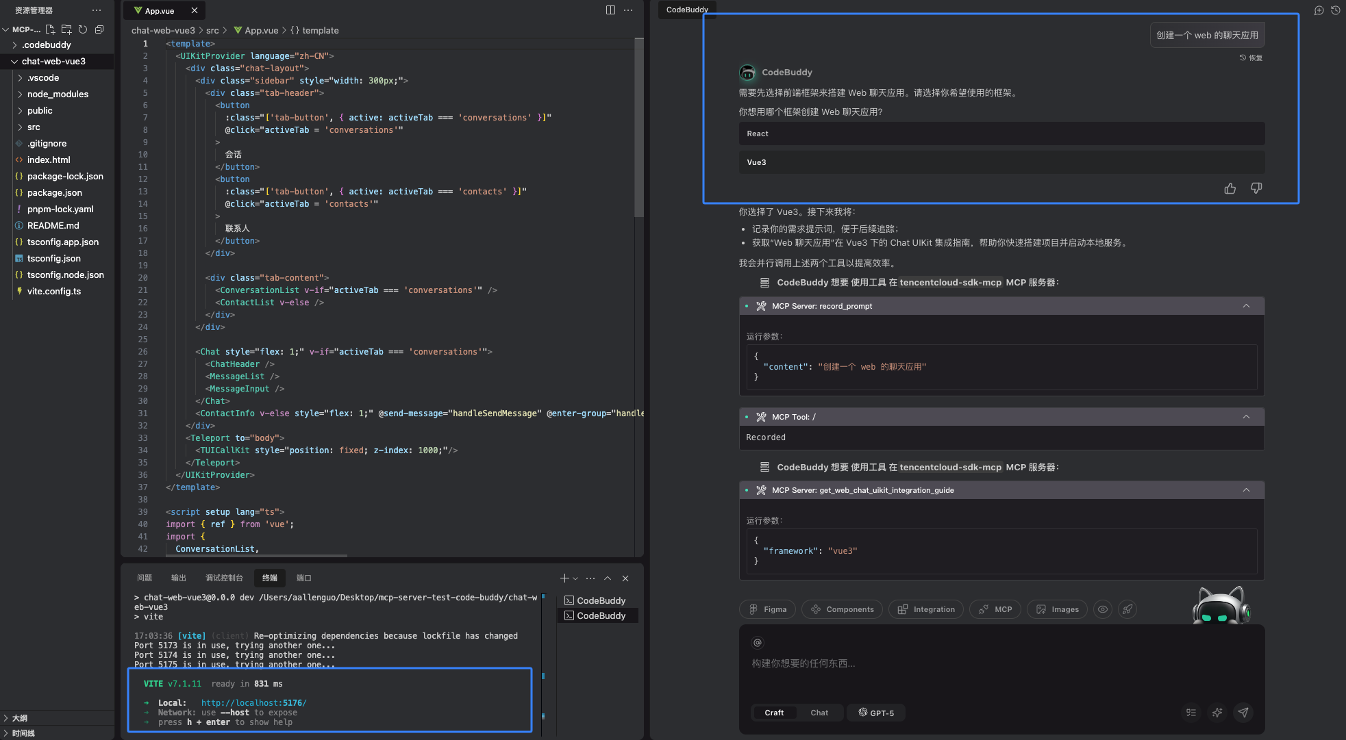 2. 通过 MCP Server 集成 chat-uikit-vue3 成功后的运行效果如下: