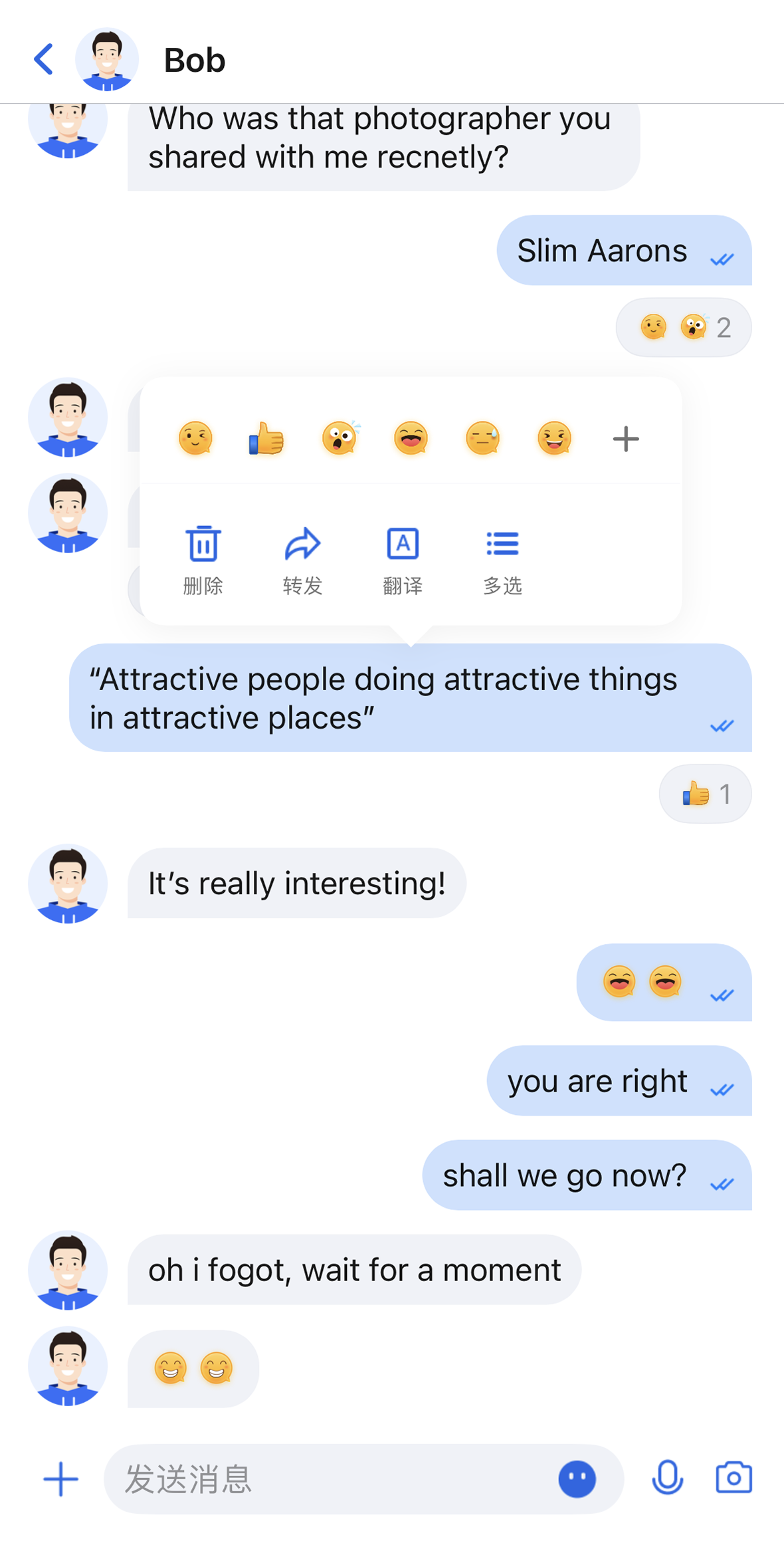 聊天消息列表 | 消息长按菜单 |
