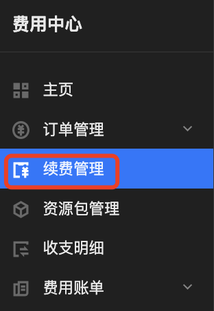 1. 进入费用中心 > 续费管理 页面。