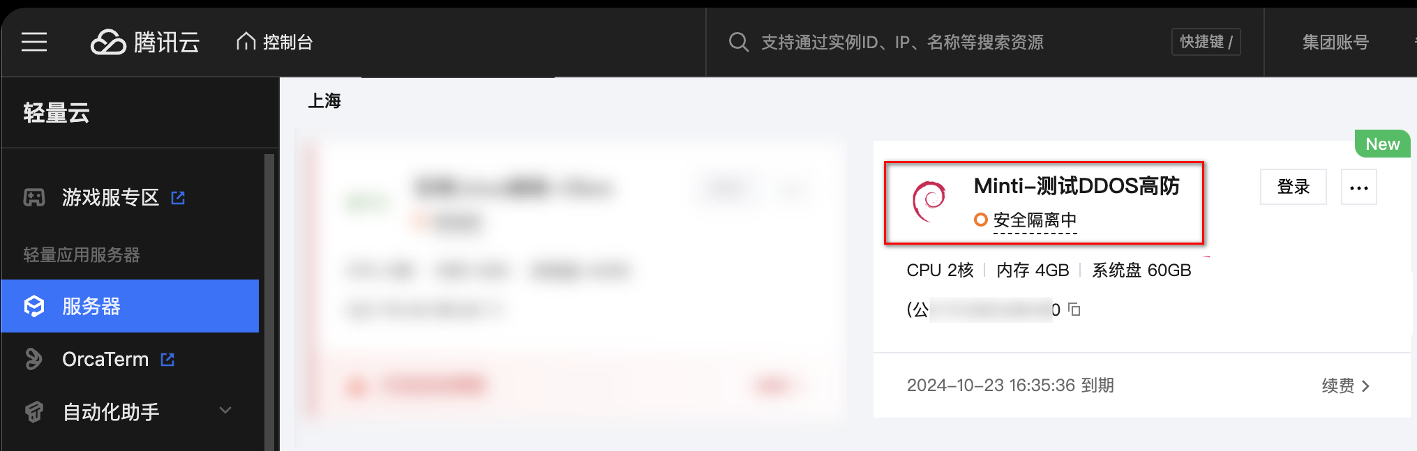 轻量应用服务器可能会因被 DDoS 攻击被封堵隔离,被隔离的轻量应用服务器在控制台显示为“BANNING”状态。