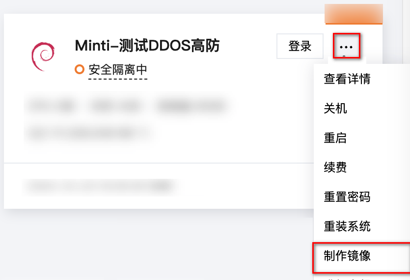 1. 选择被隔离的服务器,单击制作镜像,制作旧轻量制作镜像 A。具体操作步骤,请参见 创建自定义镜像。