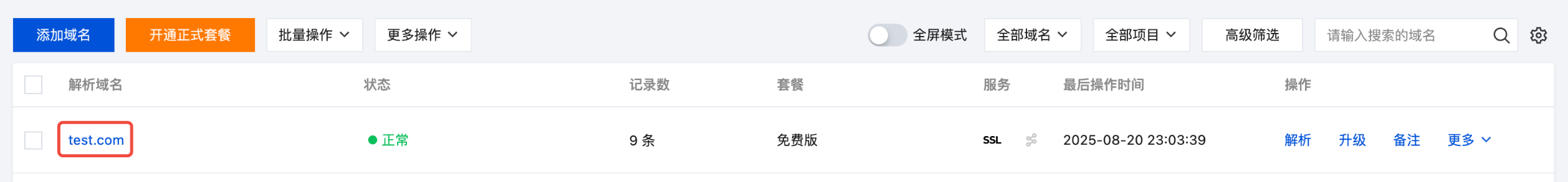 5.2 在权威解析页面中,单击目标域名名称,如下图所示: