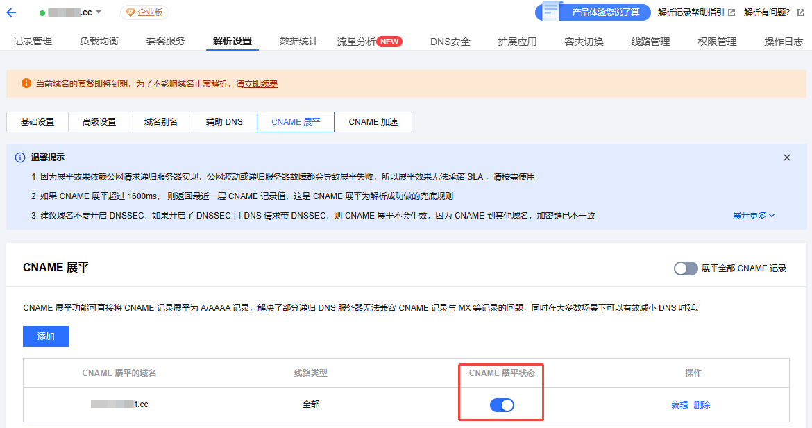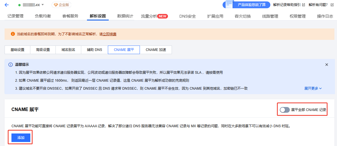 开启 CNAME 展平