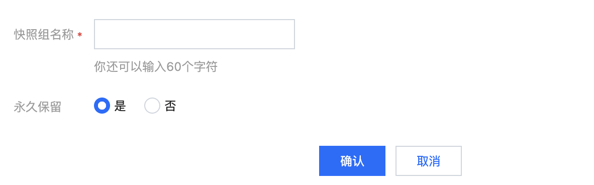 4. 输入快照组名称,选择保留时间后,单击确认。