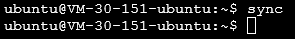 命令,将文件系统内存缓冲区中的数据强制立刻写入云硬盘内,且在创建快照前避免写入新数据。执行命令后无错误信息返回,即表示缓存中的数据已写入云硬盘内。如下图所示: