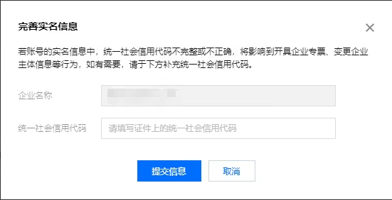本文指导您如何为已完成企业实名认证的腾讯云账号修改或者补齐统一社会信用代码。