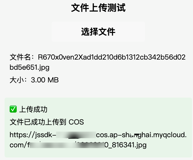const COS = require('./lib/cos-wx-sdk-v5.js'); // 开发时使用// const COS = require('./lib/cos-wx-sdk-v5.min.js'); // 上线时使用压缩包// console.log(COS.version); sdk 版本需要不低于1.7.2wx.chooseMedia({count: 9,mediaType: ['image','video'],sourceType: ['album', 'camera'],maxDuration: 30,camera: 'back',success(res) {uploadFile(res.tempFiles[0]);}});function uploadFile(file) {const getUploadParams = function() {return new Promise((resolve, reject) => {const stsUrl = `http://127.0.0.1:3000/getKeyAndCredentials?filename=${file.tempFilePath}`;wx.request({url: stsUrl,dataType: 'json',success: function (result) {resolve(result.data);},fail: function() {reject('get sts error');}});});}const upload = async function () {try {const data = await getUploadParams();// 服务端接口需要返回:上传的存储桶、地域、随机路径的对象键、临时密钥console.log('getKeyAndCredentials:', data);// 取临时密钥示例1:如果通过 qcloud-cos-sts-sdk 获取临时密钥字段的格式。在返回值里取临时密钥信息,上传的文件路径信息const { credentials = {}, startTime, expiredTime, bucket, region, key } = data;const { tmpSecretId, tmpSecretKey, sessionToken } = credentials;// 取临时密钥示例2:如果直接走请求云 API,或使用云 API SDK 调用临时密钥接口,返回的是大写驼峰格式// const tmpSecretId = data.Credentials.TmpSecretId;// const tmpSecretKey= data.Credentials.TmpSecretKey;// const sessionToken = data.Credentials.Token;// const expiredTime= data.ExpiredTime;// 校验 getUploadParams 返回参数,以实际返回格式为准const params = { tmpSecretId, tmpSecretKey, sessionToken, bucket, region, key };const emptyParam = Object.keys(params).find(key => !params[key]);if (emptyParam) {console.error(`参数错误: ${emptyParam} 不能为空`);return;}// 创建 SDK 实例,传入临时密钥参数const cos = new COS({SecretId: tmpSecretId,SecretKey: tmpSecretKey,SecurityToken: sessionToken,StartTime: startTime,ExpiredTime: expiredTime,SimpleUploadMethod: 'putObject',});cos.uploadFile({Bucket: bucket,Region: region,Key: key,FilePath: file.tempFilePath,FileSize: file.size,SliceSize: 1024 * 1024 * 5, // 文件大于5mb 自动使用分块上传},function (err, data) {if (err) {console.error('上传失败', err);} else {console.log('上传成功', data);}});} catch (e) {console.error(e);}};upload();}