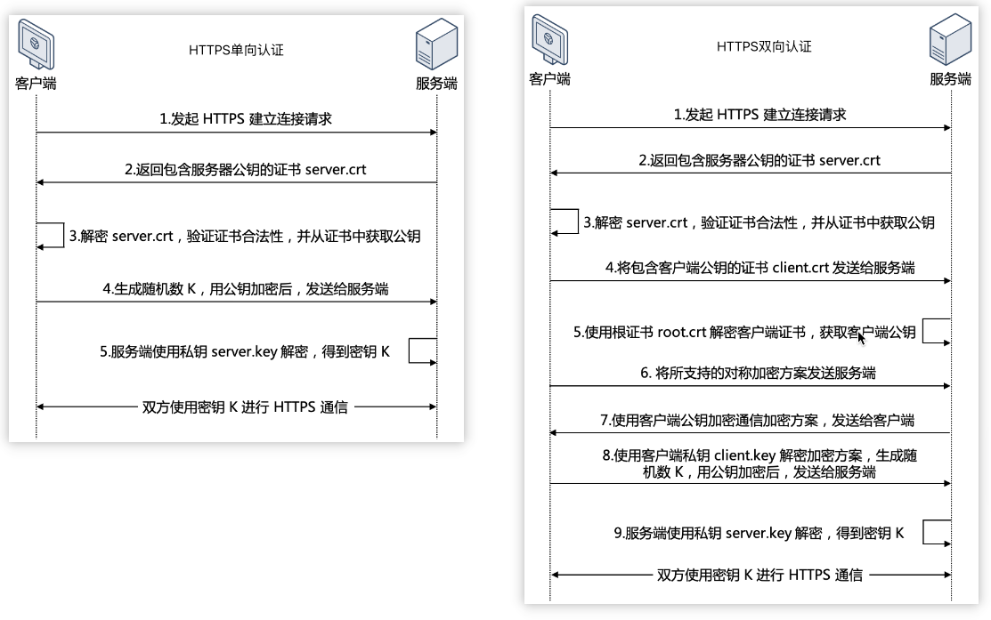 HTTPS 双向认证,又称为双向 TLS 认证或客户端认证,是一种安全通信协议,其中服务器和客户端都需要验证对方的身份。在标准 HTTPS 中,主要是服务器向客户端证明自己的身份(通过服务器证书),从而建立起一个安全的、加密的通信通道。双向认证在此基础上更进一步,要求客户端也提供证书,由服务端验证客户端的身份。这种方式常用于需要高度安全的系统,以确保通信双方都是可信任的。