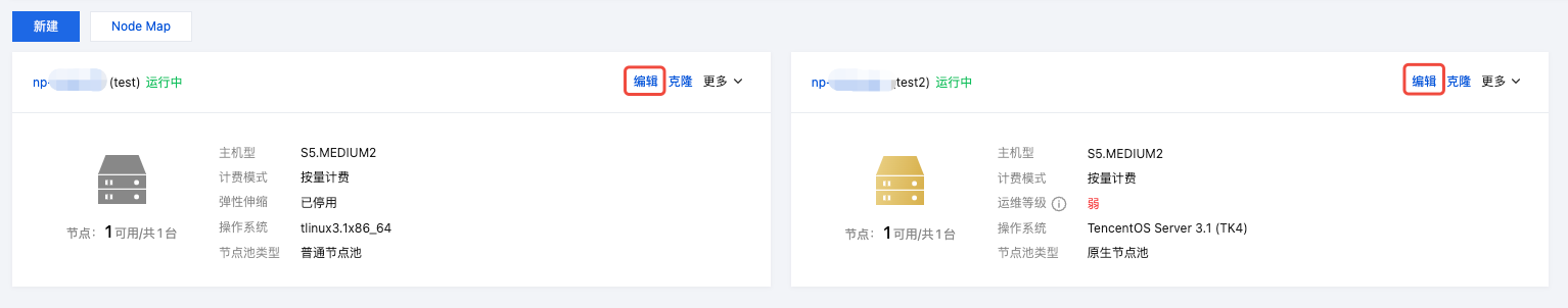 2. 在编辑参数设置中,新增或修改节点池中节点的 label,默认需添加
