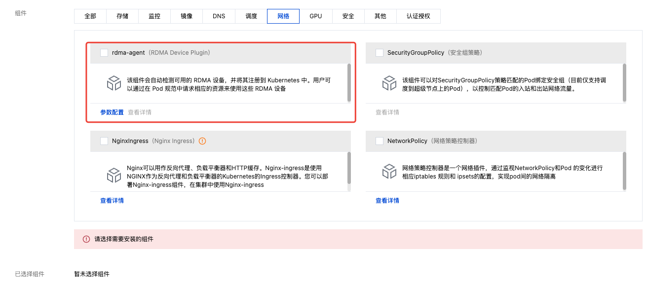 4. 在新建组件管理页面中勾选 rdma-agent。如下图所示: