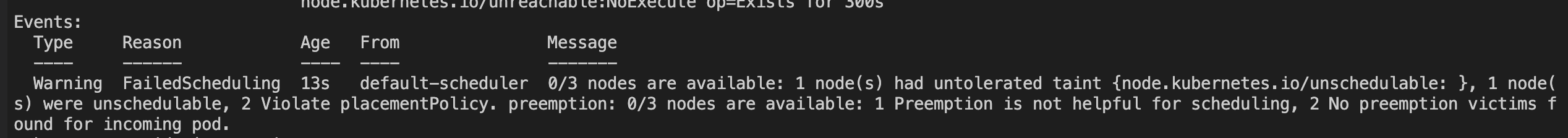 3. 确认 Pod 无法调度的原因是否是因为 PlacementPolicy 的拦截: