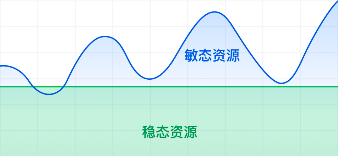 通常您会维持基于原生节点的稳态资源池,用于您日常的资源运维。在流量洪峰的场景下,会调度至弹性资源池,进行快速资源扩容。您可以设置资源池的优先级,优先调度至稳定资源池,有流量洪峰的敏态场景下,调度至弹性资源池。