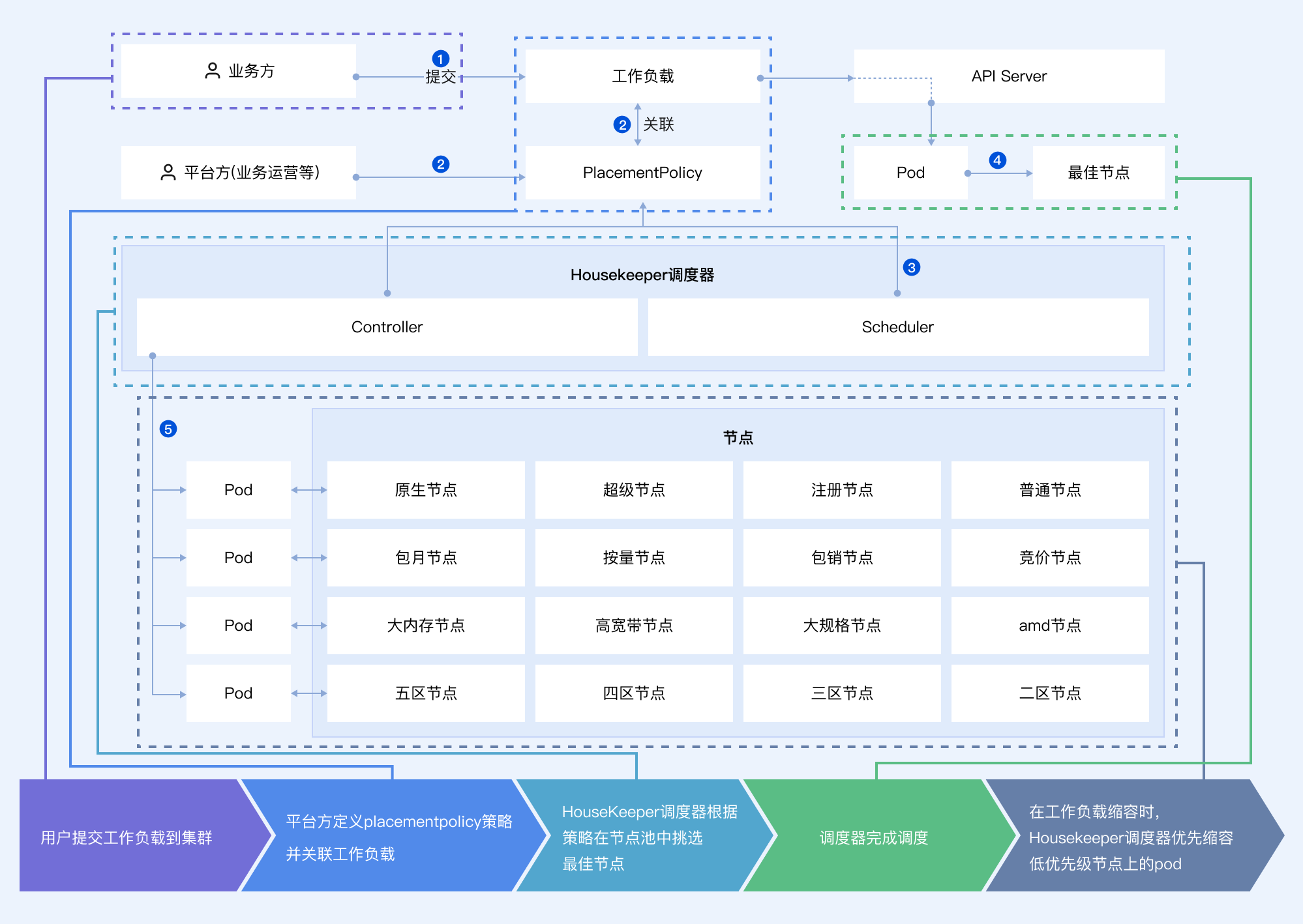 1. 提交工作负载:用户的业务方提交工作负载到集群。