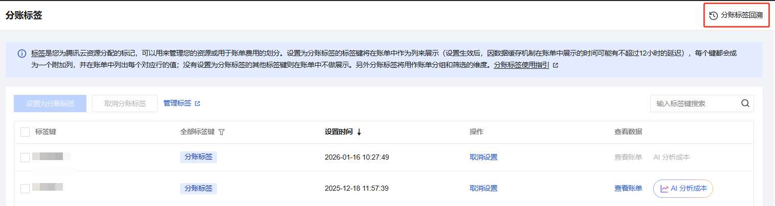 若您已为资源分配了标签且成功设置分账标签后,从当月起可从账单 API 中获取标签相关信息。
