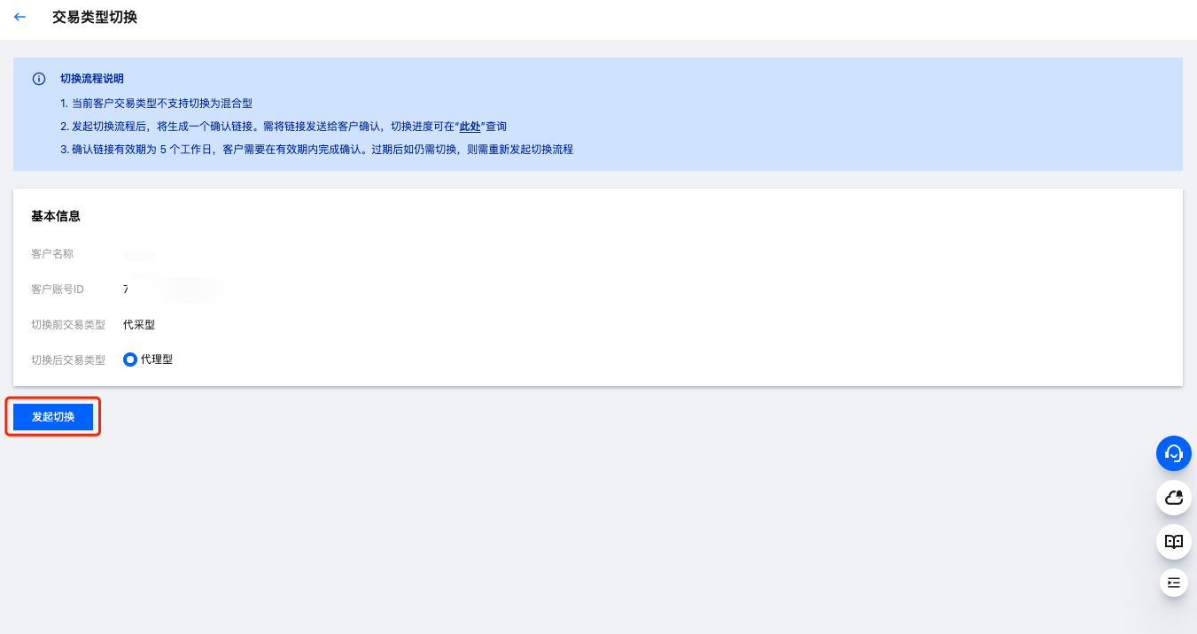3. 进入交易类型切换详情页后,继续单击发起切换。