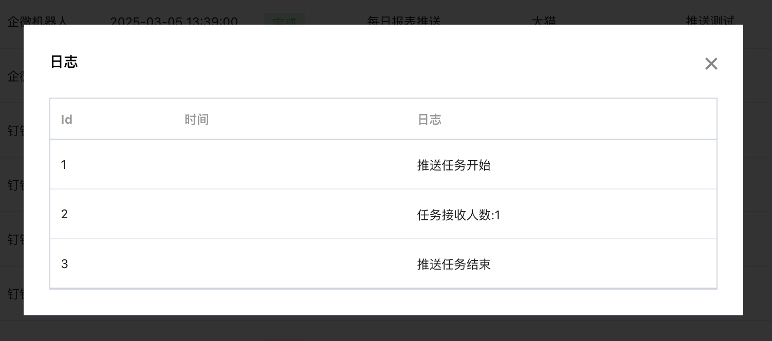 通知机器人 | 用于测试及告警信息接收,可输入群机器人地址(为阻止误操作,这里只允许输入,不允许选择机器人) | 建议不要和正式推送机器人同一地址 |