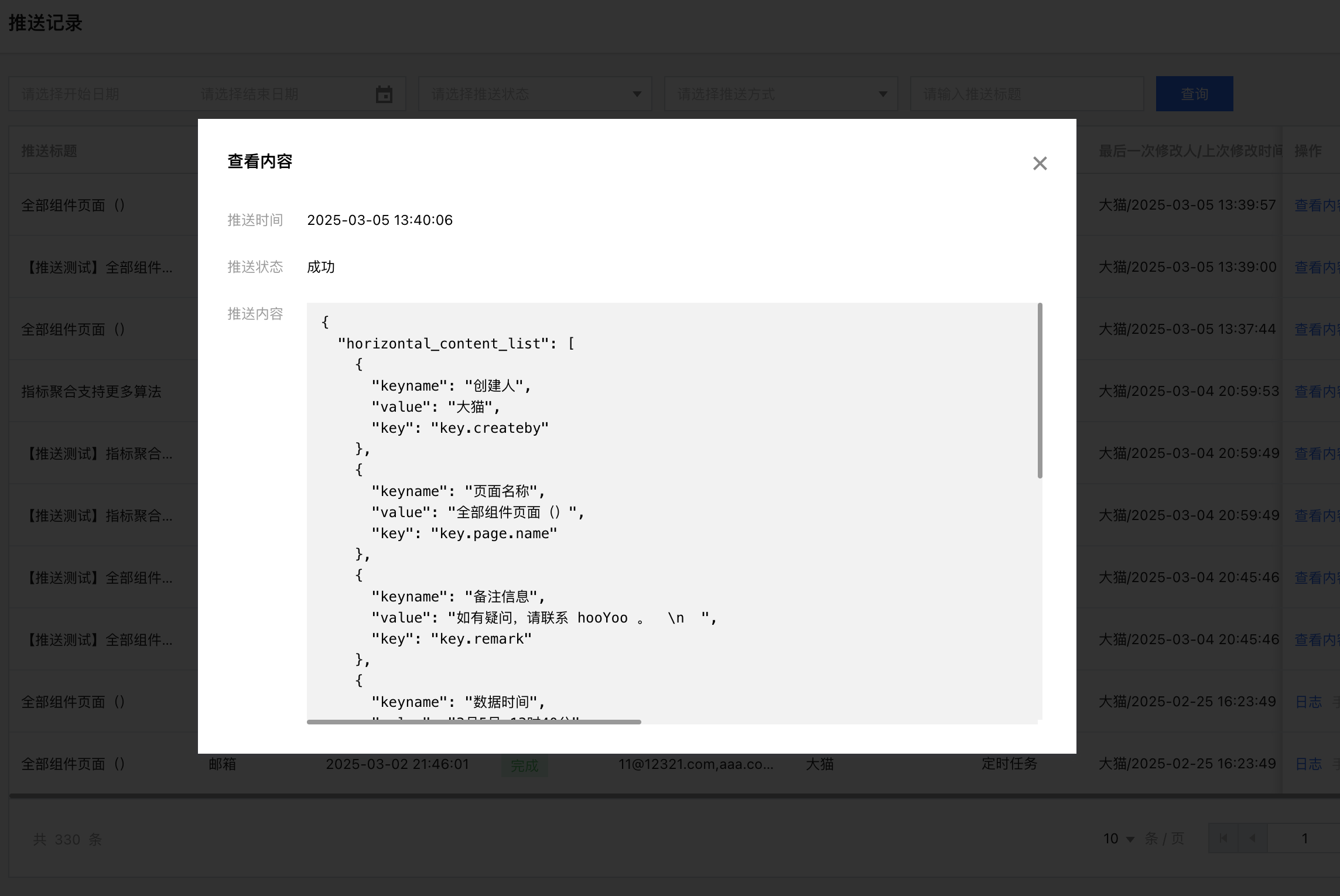 用户可以在 推送记录 里查询当前项目已推送的情况。