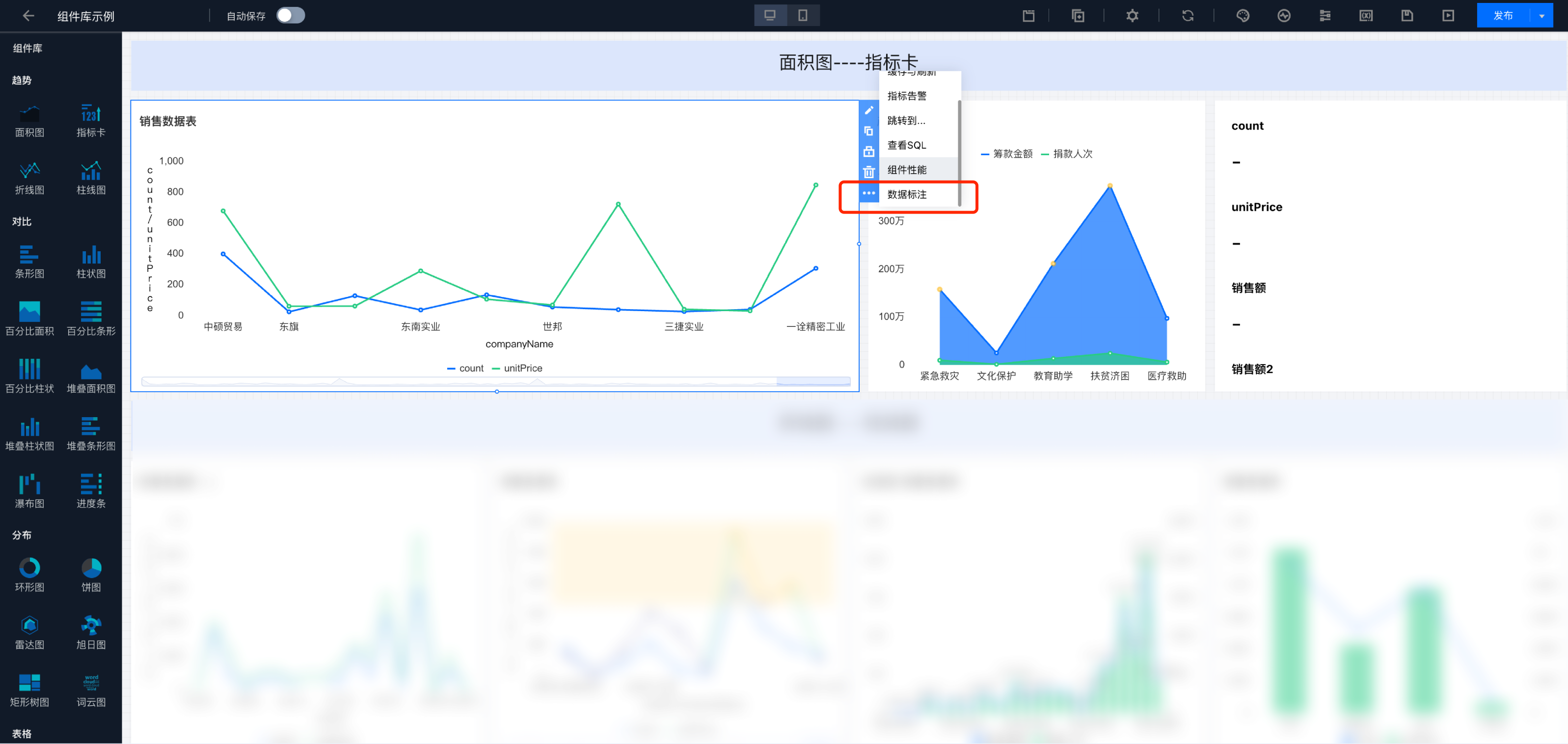 1. 组件侧边栏点击更多后下拉,选择数据标注。