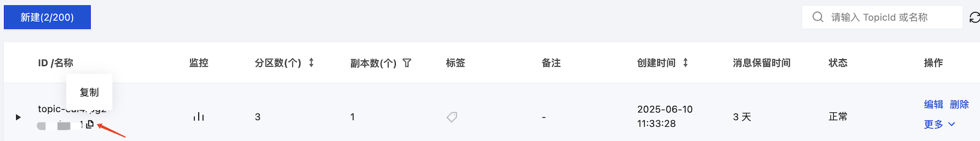 Topic 名称在控制台的 Topic 列表页面获取。