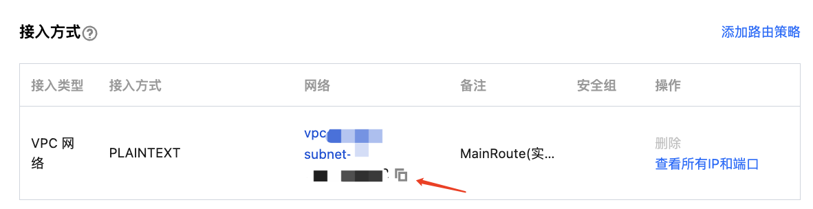 接入点在控制台的实例基本信息页面的接入方式模块的网络列复制。