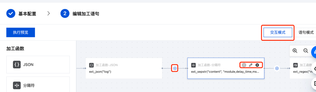 交互模式仅支持部分函数。当目标日志主题为动态日志主题时,不支持交互模式.