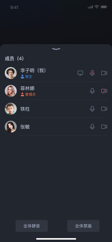 功能入口 | 标准房间主页 | 网络研讨会主页 | 成员管理面板 |