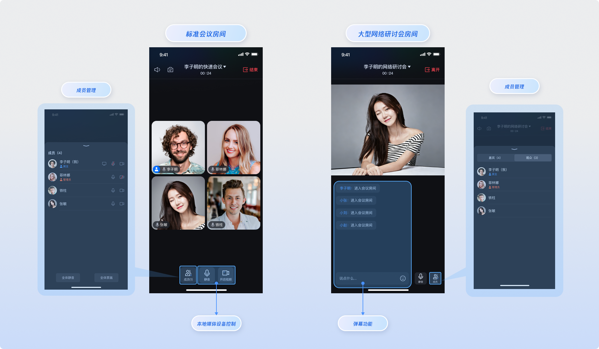 功能入口 | 标准房间主页 | 网络研讨会主页 | 成员管理面板 |