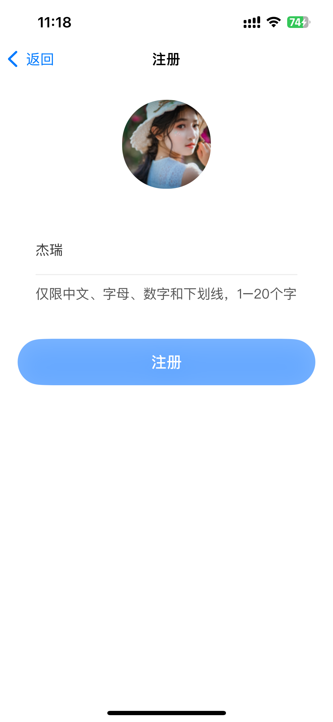 Demo 启动后,请输入登录的用户 ID 。如果您当前的 ID 未曾注册过,会进入到注册界面,您可以在该界面为自己设置昵称。