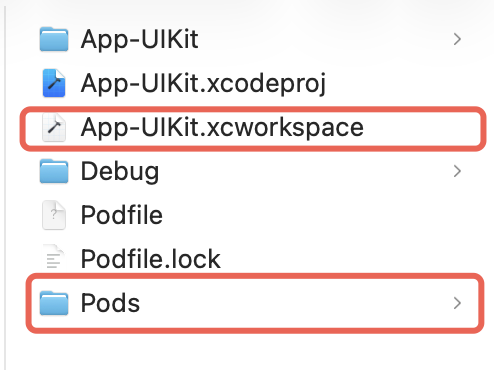 Pods 目录 和 App-UIKit.xcworkspace 工程文件,请双击打开App-UIKit.xcworkspace 文件。